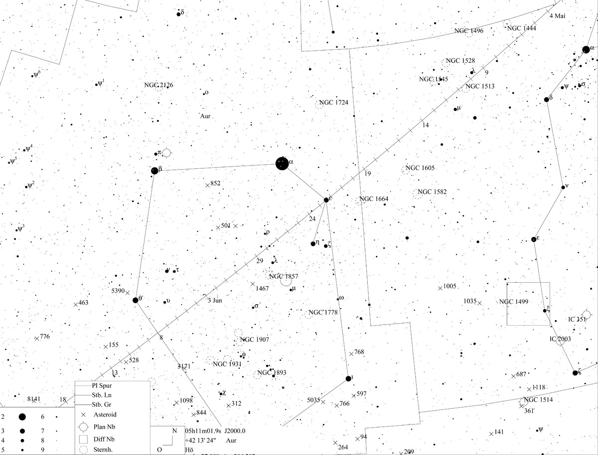 Der Komet ist bis zum Frühsommer als zirkumpolares Objekt zu beobachten, wobei er allerdings leider immer sehr horizontnah bleiben wird. Ende April erreicht er seine Maximalhelligkeit von rund 8m4. Im Spätsommer wird der Komet dann am Morgenhimmel wieder sichtbar werden. Allerdings auch wieder recht horizontnah und auch nur noch rund 11-12m hell.Der Komet bewegt sich von der Cassiopeia aus langsam durch die bekannten Wintersternbilder
