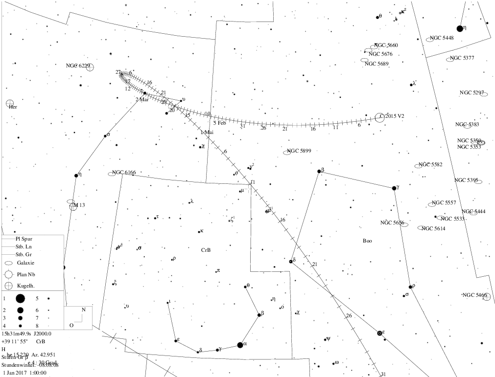 Der Komet wurde am 15.03.2015 im Rahmen des Catalina Sky Surveys entdeckt. Der Komet entwickelte sich deutlich heller als erwartet und ist bis weit in das Frühjahr hinein zirkumpolar beobachtbar.